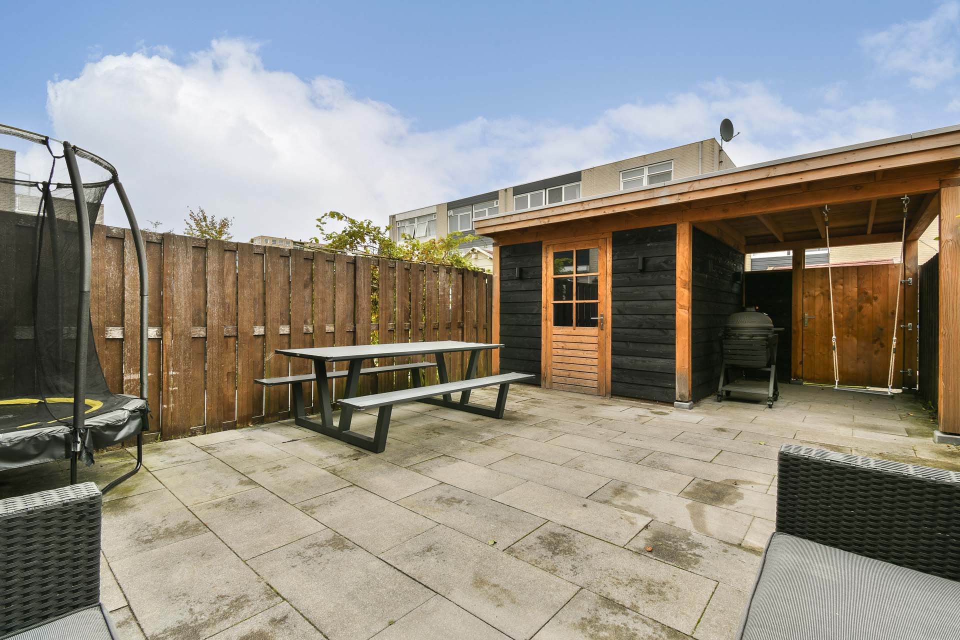 De woning beschikt over een voortuin op het noordoosten en een achtertuin op het zuidwesten, beide keurig aangelegd en onderhoudsvriendelijk. In de achtertuin is altijd een fijn plekje te vinden in de zon of juist in de schaduw. Achterin de tuin bevindt zich een praktische berging die 2024 geplaatst is, ideaal voor fietsen of tuingereedschap. Daarnaast bevindt zich ook nog een overdekt terras waar u in de zomer wat schaduw kunt opzoeken.